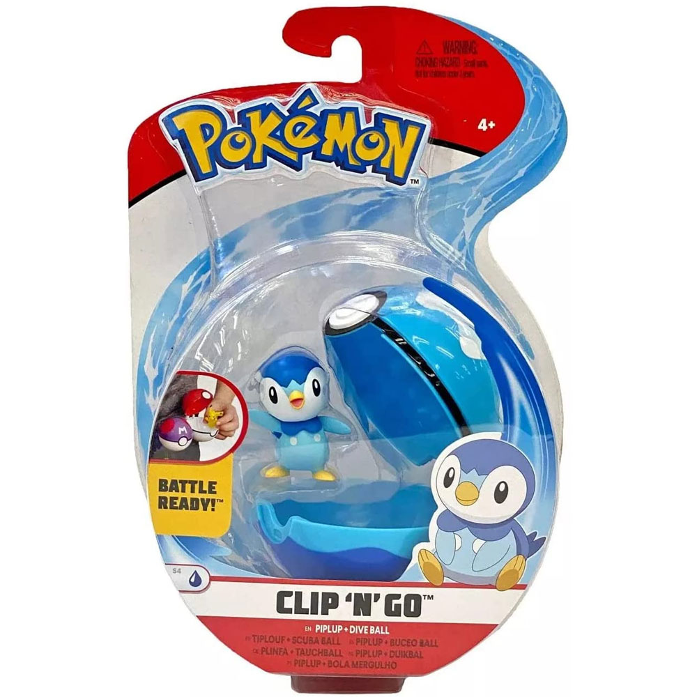 Jazwares - Pokemon Clip 'N' Go S4 Poke Ball & Figure - PIPLUP w/ Dive Ball (3 inch) (New)